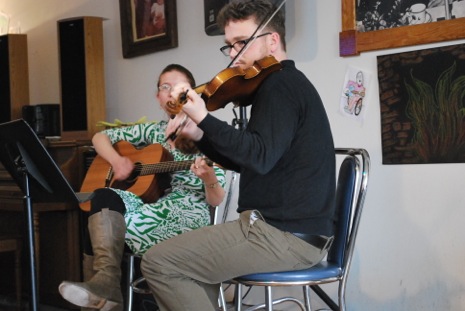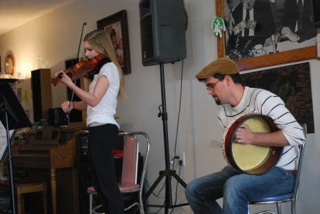 David and I playing ‘Whiskey Before Breakfast’ and ‘Off to California’.