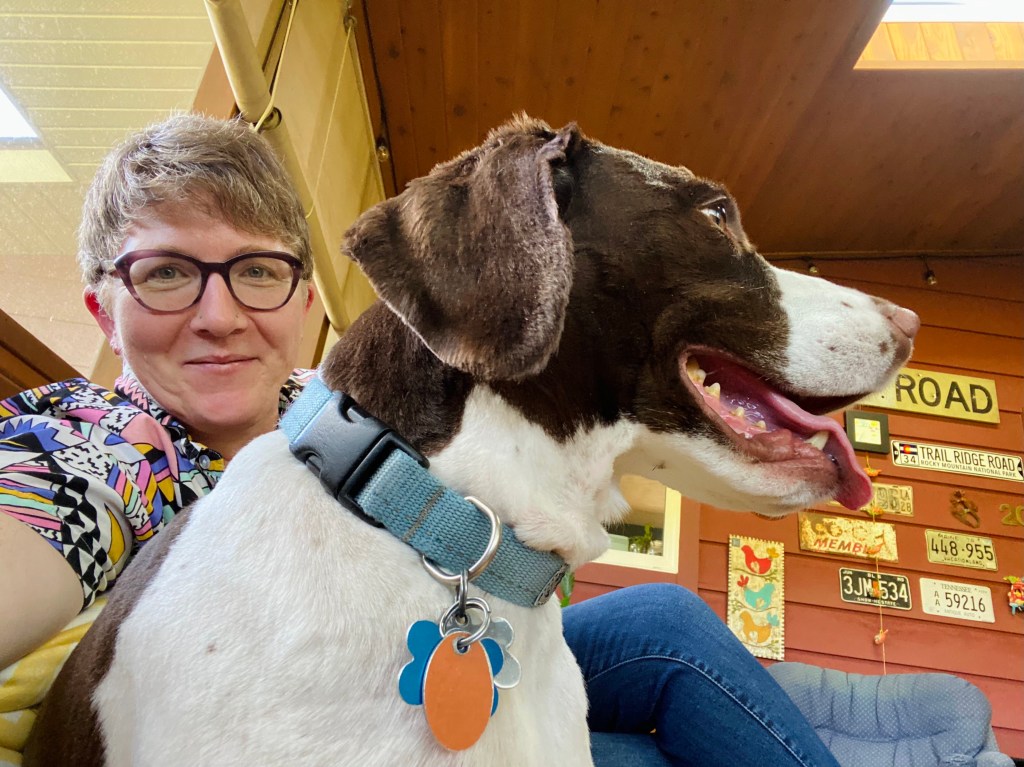 Quick pit stop at Jeff’s house so he could change clothes and so I could get a little love from Happy…