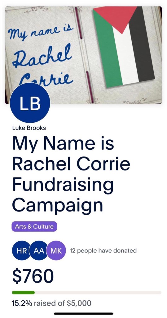 Willow Creek Theatre Company is raising money to produce “My Name is Rachel Corrie”, a one act show based on the emails and journal entries of the American activist who was killed by Israeli forces while protecting a Palestinian home.