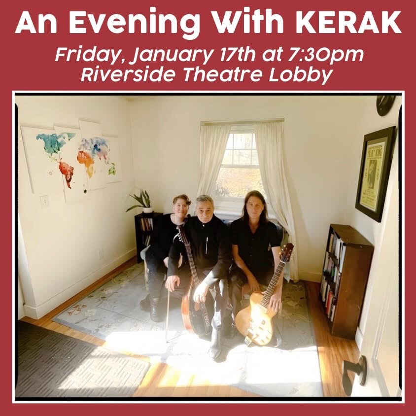 An Evening with KERAK on Friday, January 17th at 7:30pm in the Riverside Theatre Lobby.